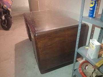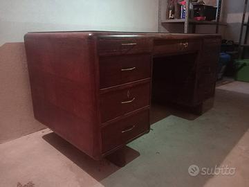 larghezza 80 lunghezza 155 altezza 80 colore mogano con piano appoggio in vetro restauro scrivania primi anni 70 completa cassetti e chiavi.