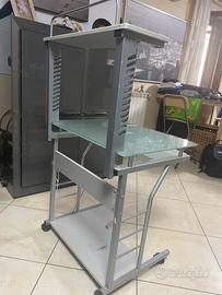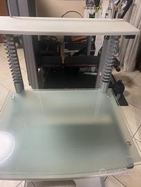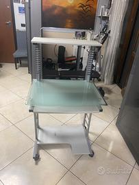 Scrivania con appoggio in vetro, sotto c'è lo scompartimento per appoggiare quaderni,libri ecc, la scrivania ha le rotelle. Scrivania usata ma in ottime condizioni,