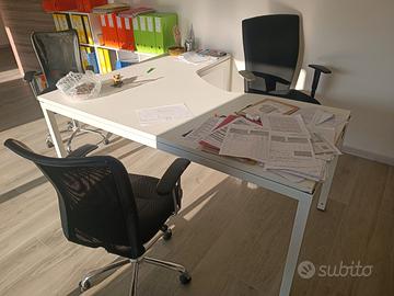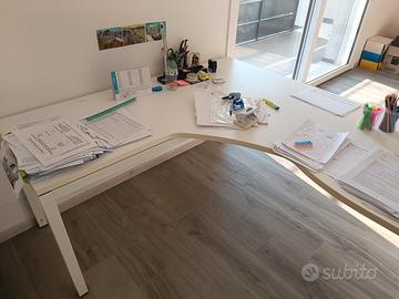dimensioni: 180 x 160 cm Le scrivanie sono in buone condizioni e vengono vendute viste e piaciute. Prezzo: €230 ciascuna €400 per entrambe Ritiro a carico dell’acquirente direttamente in ufficio. Per informazioni, contattare in privato
