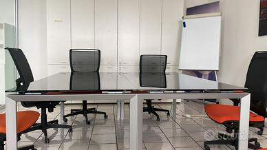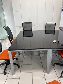 scrivanie da ufficio in vetro antigraffio, con gambe in acciaio.