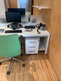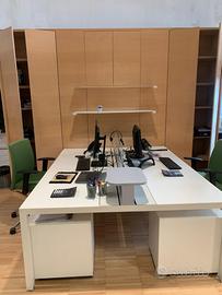 2 scrivamie lunghezza 2 mt marca Estel, complete di 2 cassettiere, 2 porta computer, armadio in legno 4 ante