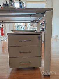 Scrivania dim. 160 x 80, gamba bianca piano tortora cassettiera 3 cassetti struttura bianca cassetti e top tortora
