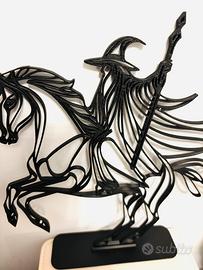 Porta la magia della Terra di Mezzo nella tua casa con questa scultura 3D in stile Line Art Low Poly raffigurante Gandalf a cavallo, ispirata al Signore degli Anelli.