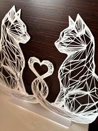 Scultura in stile Line Art Low Poly che raffigura due gatti innamorati le cui code si intrecciano formando un cuore.