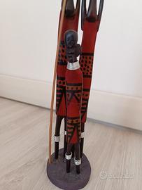 Le decorazioni dipinte nei toni rosso, nero e naturale richiamano lo stile tradizionale africano reinterpretato in chiave decorativa, rendendo il pezzo perfetto sia per ambienti etnici sia per spazi moderni e minimal.