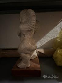 Statua con finitura craquelé montata su base in legno con targhetta.