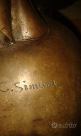 fusione antica firmata proveniente da Francia, alta cm. 107 e pesante circa 23 Kg. Basamento in marmo rosso e festone bronzeo stile impero. La scultura è firmata "C. Simart " noto scultore francese dell'800. Pezzo importante, da esposizione museale.