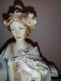 Statua scultura figurina in pregiato capodimonte a firma P Cedraschi della collezione Florence del 1985. Donna elegante con fiori su base in legno 13 x 13 cm, altezza 31 cm e larghezza 15 cm. La statuetta è in ottime condizioni generali (senza scheggiature o crepe). Questa statuetta sarà una splendida aggiunta alla vostra collezione come soprammobile o un regalo perfetto per una persona speciale. Ulteriori foto o informazioni su richiesta.