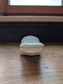 Vendesi splendida scultura in ceramica smaltata dal design organico e minimalista. L'oggetto presenta una linea fluida e moderna, perfetta come complemento d'arredo per ambienti contemporanei, scandinavi o vintage. Il pezzo è caratterizzato da una lavorazione artigianale con dettagli puntiformi che fungono da diffusore per essenze o pot-pourri (sono presenti fori sul muso, sul retro e sulla base per la circolazione dell'aria). Materiale: Ceramica lucida smaltata Colore: Bianco panna / Grigio chiarissimo con venature brune naturali Stato: Ottime condizioni, integra, senza sbeccature. Dettagli: Base con gommini antigraffio già applicati. #ceramica #design #homedecor #vintage #artisan #scultura #modernariato #diffusoreessenze #fattoamano #interiordesign #collezionismo #oggettistica