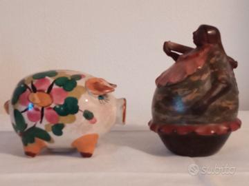- Maialino salvadanaio in ceramica finemente decorato a mano vintage con tappo per svuotarlo. In buone condizioni. Dimensioni: altezza cm 11 - lunghezza cm14 - larghezza cm 8,5