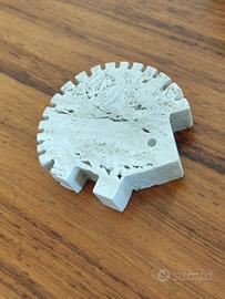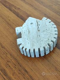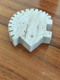 Scultura vintage anni 70 del designer italiano Enzo Mari in travertino della serie degli animali disegnata per Fratelli Mannelli. Riccio, misure 7,5x7x2 cm. Italian design, arte, made in italy.