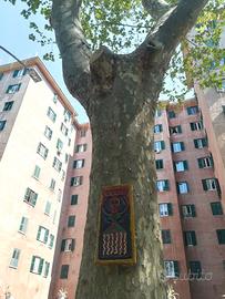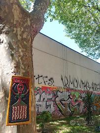Scultura etnica su tavola legno dipinto donna con cesto in testa. Dimensioni tavola: 25 x 60 cm. A partire da 30E. Per informazioni rivolgersi al 3381562893.