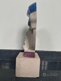 Realizzata in stone composito e pigmenti policromi, poggia su base in marmo chiaro con targhetta metallica originale.