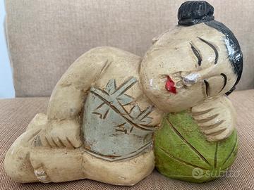 Scultura giapponese vintage in legno