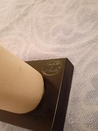 La scultura è in ceramica bianca con una finitura opaca, montata su una base quadrata lucida nera.