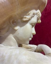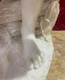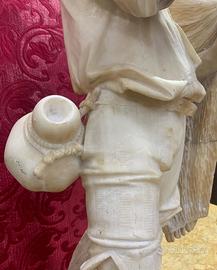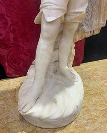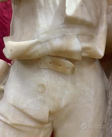 Scultura in alabastro d’epoca Ottocento meravigliosi e delicati i lineamenti di questo giovane pescatore la base misura 35x25 altezza 80cm