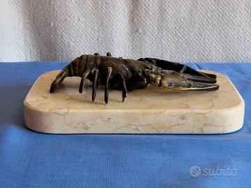 Scultura in bronzo di ARAGOSTA su base di marmo bianco.