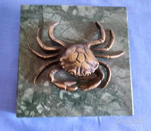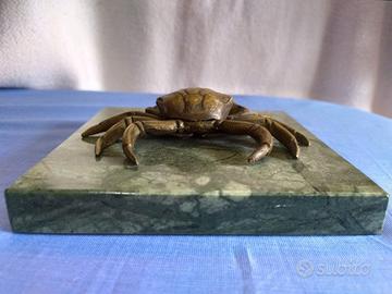 Scultura in bronzo di un GRANCHIO su base di marmo verde.