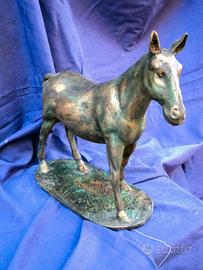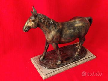 Cavallo realizzato con la tradizionale e antichissima tecnica della cartapesta leccese con cui si realizzavano le statue presente nella maggior parte delle chiese del sud Italia e nel resto della penisola. Alto cm 30 alle orecchie e rifinito ad effetto bronzo si presenta come una scultura classica, ma originale se esposta in ambienti moderni. Leggerissimo