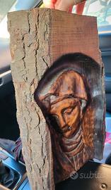 Questa scultura è un'opera di artigianato artistico in legno, che raffigura il volto della Madonna (un soggetto classico dell'iconografia sacra).Identificazione e Modello