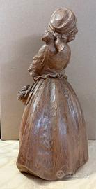 Scultura in legno fatta a mano Raffigurante bambina con rose Dimensioni: altezza cm. 30 - base diam cm. 11