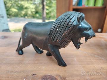 Scultura in legno intagliato a mano raffigurante un leone. Materiale:Legno scuro, trattato Dettagli:Intaglio artigianale con enfasi sulla criniera e sulla posa ruggente del leone. Stile:Rappresentazione artistica, spesso utilizzata come elemento decorativo e oggetto da collezione