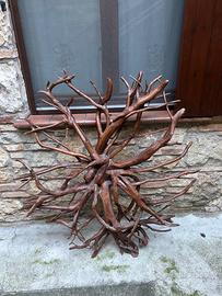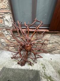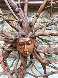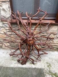 Vendo scultura artigianale in legno massiccio, lavorata a mano, raffigurante un volto armoniosamente intrecciato con rami e radici.