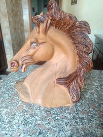 Scultura in legno testa di cavallo