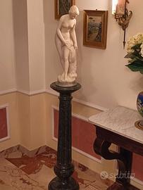 Elegante figura femminile classica (Venere pudica), scolpita in marmo bianco con base in alabastro.