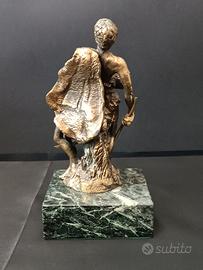 Scultura in ottone e marmo Verde Alpi - Primi '900