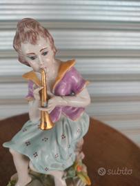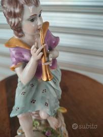 Scultura Ragazza con flauto in porcellana capodimonte Di bella misura e grande raffinatezza, presenta mancanze alcune dita,mis:alt 18cm.