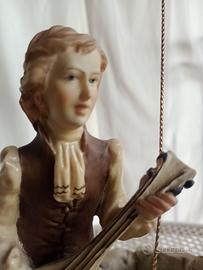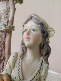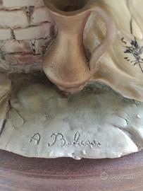 Scultura in porcellana/ceramica firmata A. Belani, realizzata con grande cura nei dettagli: abiti, volti, fiori e struttura del pozzo. Raffigura una scena romantica con musicista e giovane donna, tipica delle opere da collezione. ✔ Dimensioni: 22 × 30 cm ✔ Base in legno originale ✔ Colori vivi, dettagli finissimi ✔ Nessuna crepa o sbeccatura ✔ Ideale per collezionisti e arredamento elegante Imballo professionale e spedizione sicura.