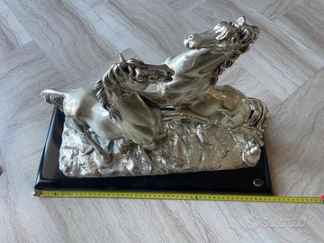 É una magnifica scultura di due cavalli in movimento, firmata da A. Santini, rinomato scultore italiano specializzato in figure classiche e animali.