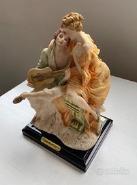 scultura in resina serenata fra innamorati, alta cm. 23, profondità cm. 12 larghezza cm.15, base in legno marrone laccato, serie Valentino by Miriam made in Italy, in ottime condizioni vendesi euro 50