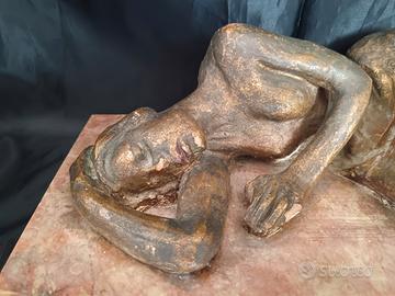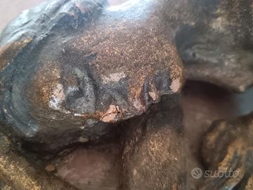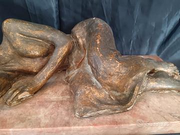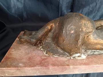 Scultura in terracotta patinata epoca XX Secolo. Piccoli segni dell'età visibili in foto. Dimensioni figura 37 x 16. Dimensioni base in marmo 40,5 x 19,5.