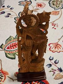 Scultura indiana in ottimo stato e buona fattura in legno di sandalo raffigurante Krishna e sua moglie Rada.