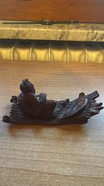 Scultura legno intagliato cinese - Pescatore carpa