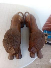Splendida copia di leoni intagliati su legno teak (molto pesanti) provenienti da arte etnica. Lunghezza di ciascuna scultura cm 58