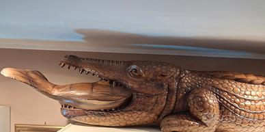 scultura lignea coccodrillo