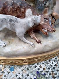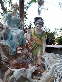 Gruppo scultoreo in maiolica raffigurante l'allegoria della caccia con il mito della dea Diana. Spedizione accurata con imballaggio professionale visibile in foto o in video prima della spedizione