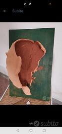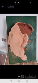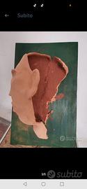 SCULTURA da tavolo o QUADRO da appendere. Terracotta su legno . Arte contemporanea. Figura anthropomorphic, Vintage anni '70/80