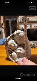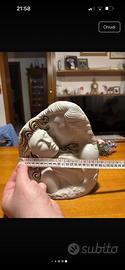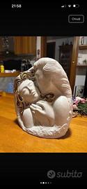 Splendida scultura da collezione firmata Cattin Porcellane d’Arte. L'opera raffigura una coppia in un tenero e romantico abbraccio, realizzata con la maestria artigianale tipica della manifattura Cattin. Il contrasto tra la superficie bianca satinata (dal design materico ed espressivo) e i dettagli rifiniti in oro lucido dona all'oggetto un'eleganza senza tempo. • Autenticità: Firmata "Cattin" sulla base (come da foto). • Stile: Romantico, moderno, raffinato. Ideale per un salotto, una camera da letto o come regalo prezioso per un anniversario o un matrimonio. Nello specifico, per questo genere di sculture, la lavorazione è solitamente questa: • Porcellana biscuit (o biscuit di porcellana): È la lavorazione più probabile per le parti bianche. Il termine "biscuit" indica la porcellana cotta ma non smaltata (senza la classica vetrificazione lucida), il che le conferisce quel caratteristico aspetto bianco opaco, vellutato al tatto e molto elegante, tipico delle produzioni Cattin. • Finiture in oro: I dettagli dorati che vedi (sui capelli e sulle linee sinuose) sono solitamente realizzati con oro zecchino 24 carati applicato a pennello o a spruzzo prima di una seconda cottura, che permette al metallo di fissarsi stabilmente sulla superficie porosa del biscuit, rendendolo brillante e durevole. • Corpo: La struttura interna è porcellana cotta ad alte temperature, che la rende pesante, compatta e "suonante" se picchiettata leggermente (un suono acuto e cristallino, a differenza della ceramica comune che ha un suono più sordo).