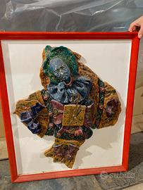 È un grande quadro orologio, con cornice rossa fresca, 53X63 cm, richiama l’arte di Sciacca. Sicilia, provincia Agrigento. Un paese ricco di colori e monumenti e per il suo Carnevale allegro.