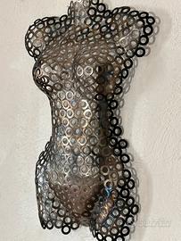 scultura realizzata con grembiale metalliche.Opera unoca realizzata artigianalmente possibilita di appendere al muro o su base in legno
