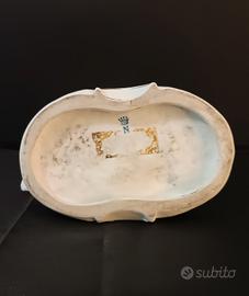 Sul fondo è presente il marchio della "N" coronata in blu sottovetro, simbolo storico utilizzato dalla manifattura per le sue produzioni più prestigiose ispirate alla tradizione di Capodimonte.