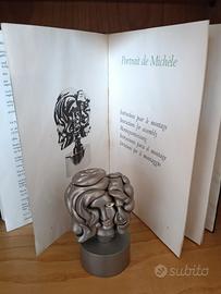 "Portrait de Michèle" dell'artista spagnolo Miguel Berrocal. Fa parte della serie Berrocal minis ed è una scultura multipla in Zamak nichelato, prodotta in circa 10.000 esemplari. È una scultura puzzle scomponibile in 17 elementi, uno dei quali è un anello in ottone dorato e smalto che forma l'occhio. Il "Portrait de Michèle" è stato realizzato nel 1969. La scultura è firmata e dotata di numero di serie. Alla scultura si aggiunge il libretto mostrato in foto con descrizione e istruzioni di montaggio. Si ascoltano offerte. Disponibilitá di spedizione.