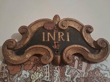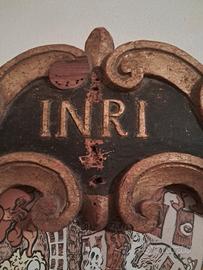 scultura religiosa INRI cornice lignea primi 800, dipinta dorata. originale. dimensioni 26x16