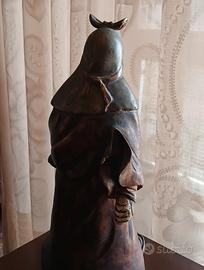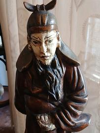 Scultura Samurai in legno massello scolpita a mano, realizzata negli anni 60 e reperita da mio nonno nella zona di Tokyo. I colori sono in condizioni di leggera usura ma tutto in uno stato originale, il manufatto non presenta nessuna condizione di linea di tarli. ( non necessita restauro ). Oggetto unico e raro altezza cm 47 e base larga cm 20.