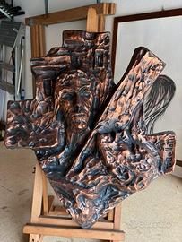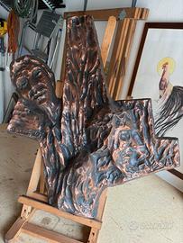 Sculture di Tonino Bellotti (1919 - 2009) noto artista di Comacchio, del 1967 misure che variano all’incirca 65 cm x 50 cm. Sono opera raffiguranti la Via Crucis fatte in una lega a base di bronzo e resina. Le opere hanno due piccoli fori per essere avvitati (poi basta una stuccatura dello stesso colore per non renderli visibili) su una base di legno o altro. Euro 150 cadauna