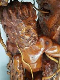 Opera scultorea in legno con base in roccia. Pezzo unico.